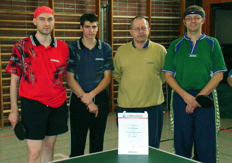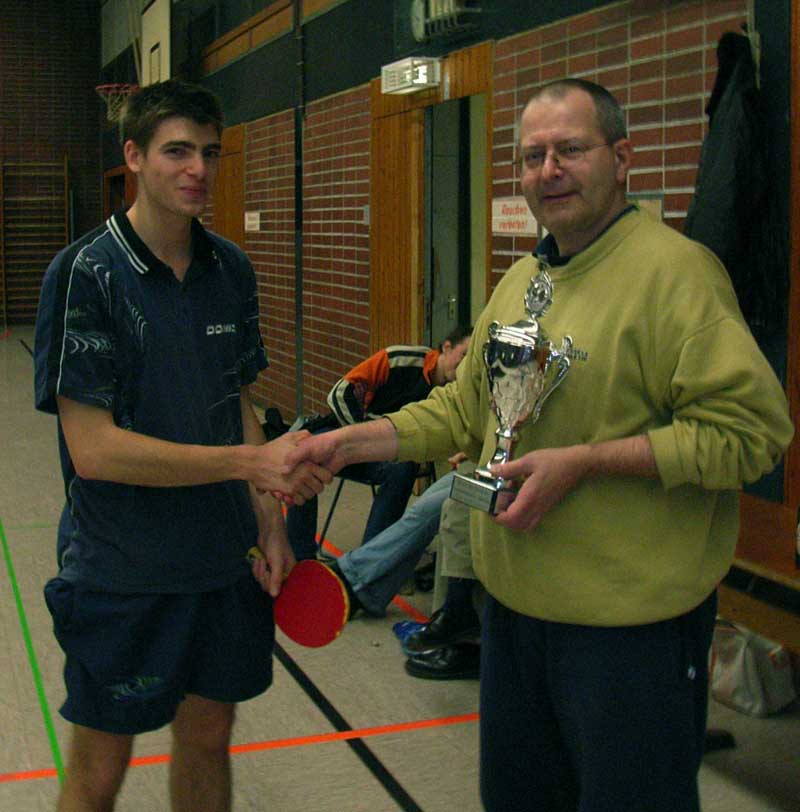Sieger im Doppel, die streng nach Einstufung im MMB aufgestellt wurden, waren Heckner/Conrad, die im Finale gegen Salisbury/Schleicher gewinnen konnten. Die Einzel wurden in 2 6er Gruppen ausgespielt, wobei Mohr,Sahl, Salisbury und Goss aus Gruppe B und Böttcher, Heckner, Conrad und Misgeld aus Gruppe A weiterkamen. Im 1/4-Finale gewannen Böttcher, Salisbury, Heckner und Conrad gegen Misgeld, Sahl, Goss und Mohr. Bötther gg Misgeld 3:1 und Heckner gg Conrad 3:2 waren die Halbfinals. Im Endspiel lies dann Sebastian Böttcher Axel Heckner beim 3:0 (9,9,10) kaum Chancen.